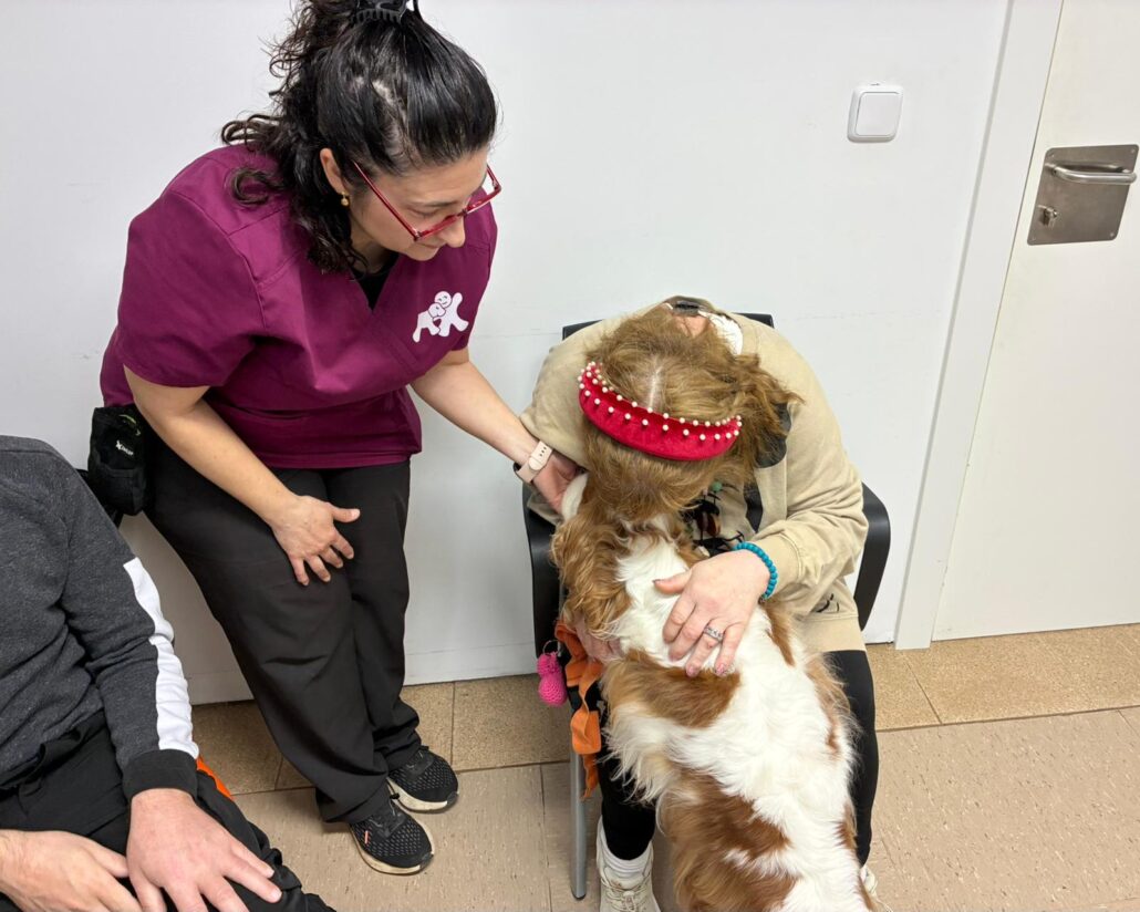 Cal dir que assistir a una sessió és comprovar com innovar en l’atenció es tradueix en alegria i benestar. Un benestar que no entén d’entrebancs ni limitacions. Que es nodreix d’una interacció ben fonamentada en la bondat dels gossos que hi participen, en aquest cas Max, Baloo i Lola . I també de la perícia de Marta Manau, tècnica en intervencions assistides amb gossos i educadora canina.
